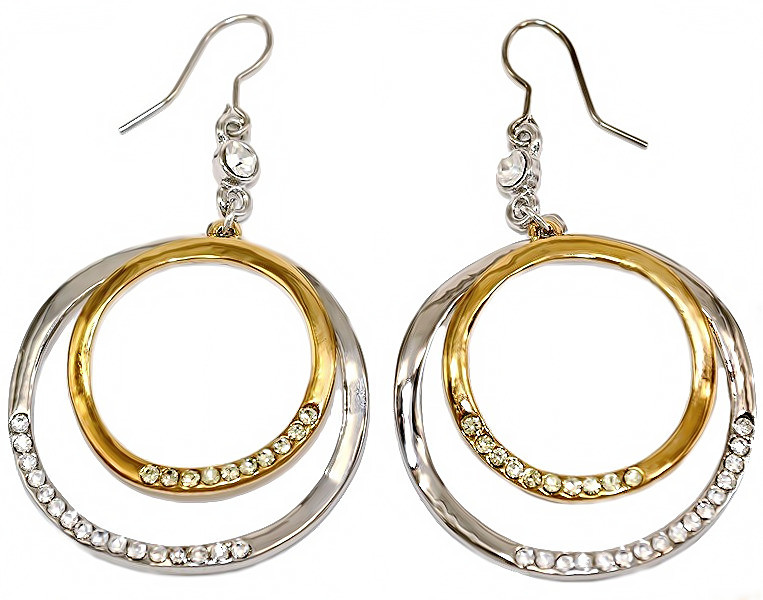 Сережки із замком петля Neoglory. Позолота + родій. Камені: білий циркон. Довжина: 6 см. Ширина: 35 мм.