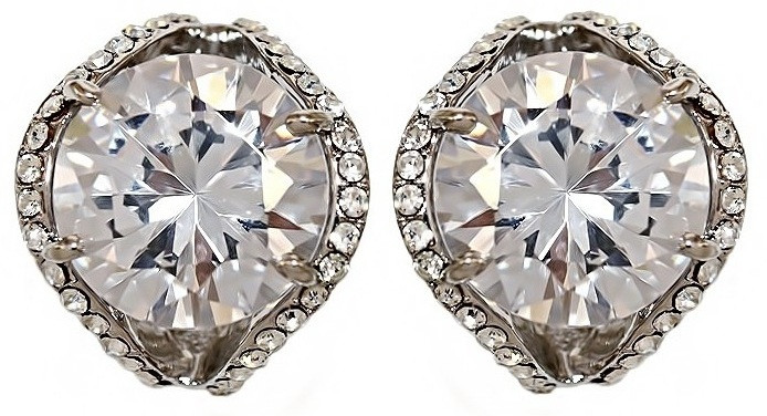 Сережки Neoglory з італійською застібкою. Родій. Камені: білі фіаніти та циркон. Довжина: 2,4 см. Ширина: 20 мм.